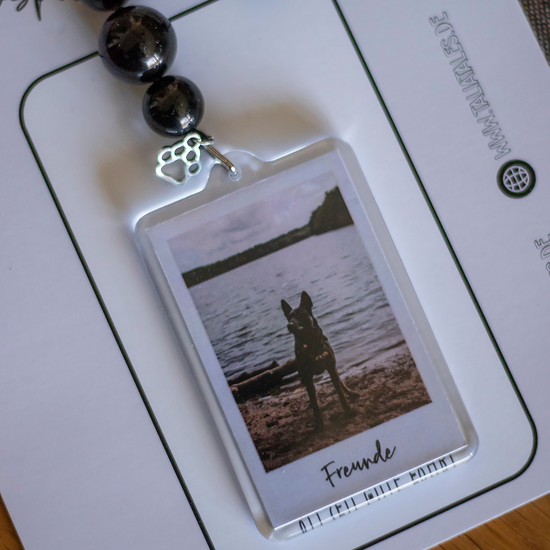 Auf Wunsch kannst du deinen Anhänger mit einer Quaste oder einem Metallpfötchen ergänzen. Diese Details machen deinen Anhänger noch individueller.