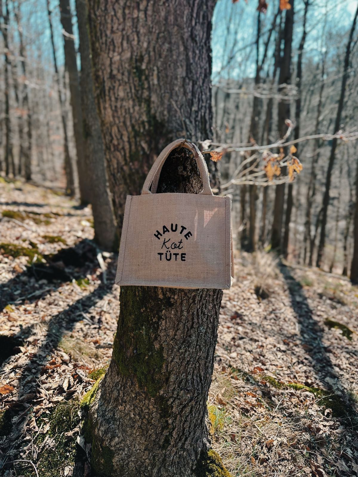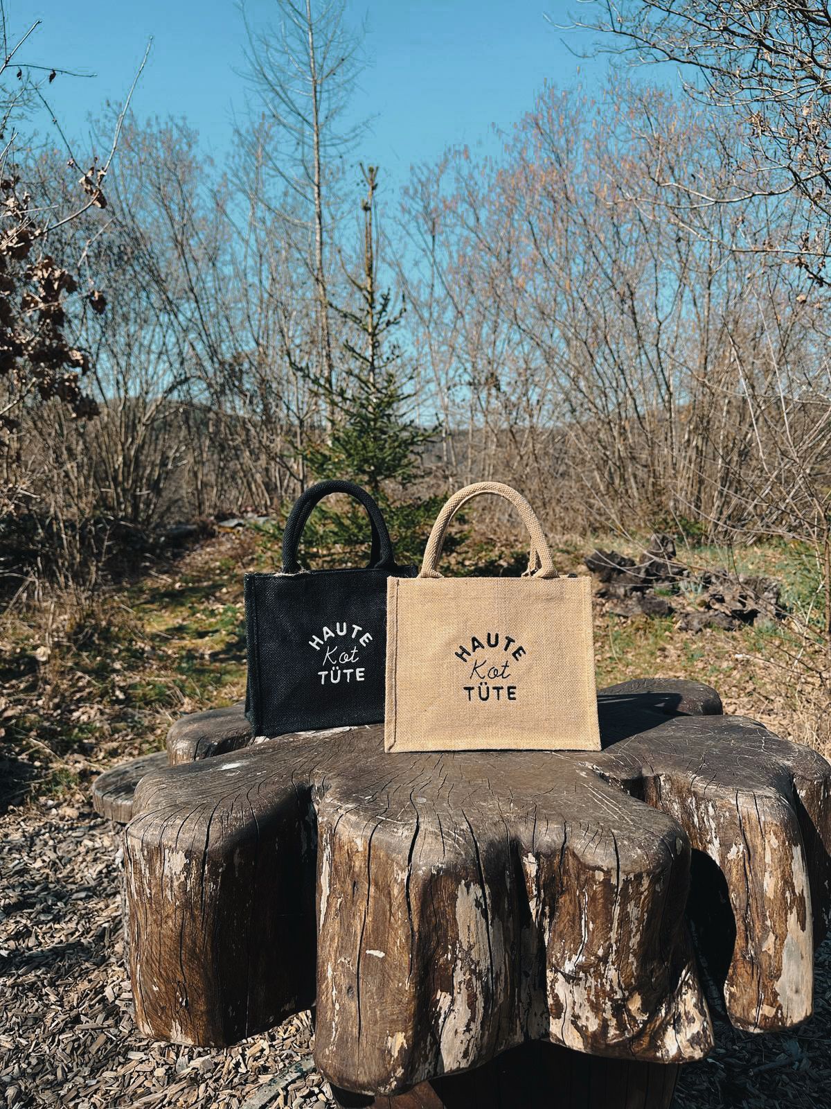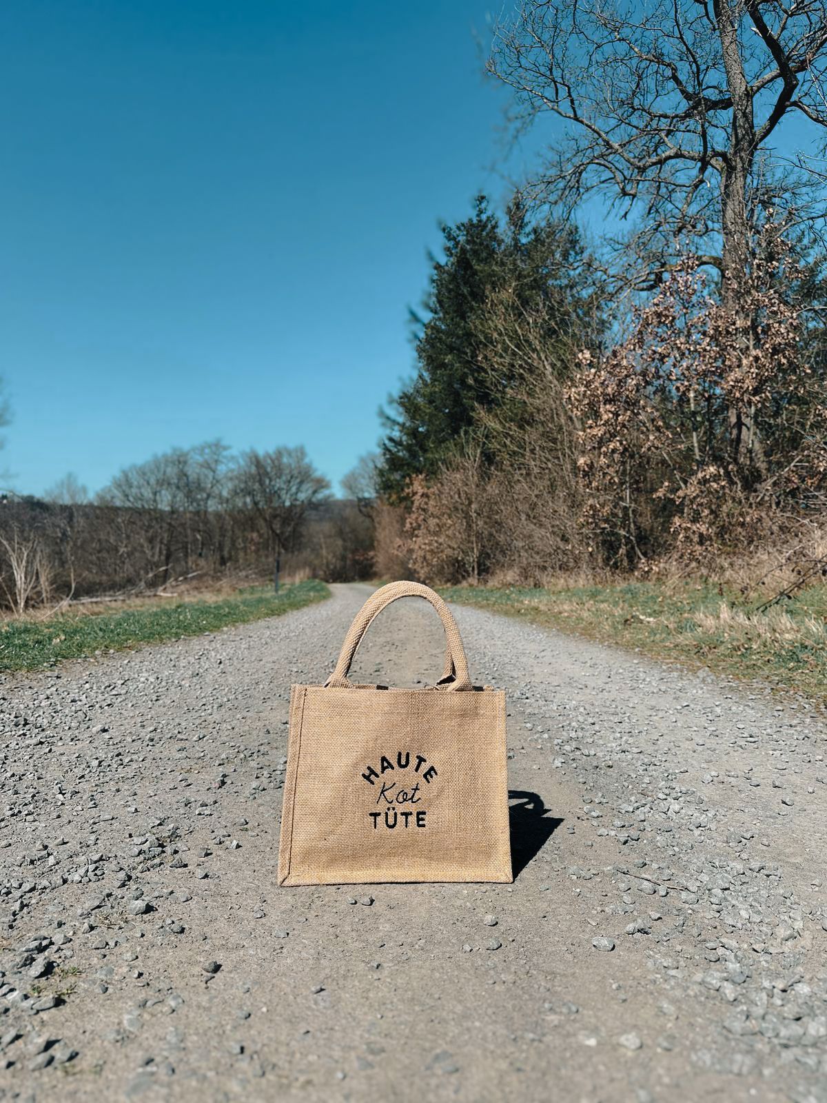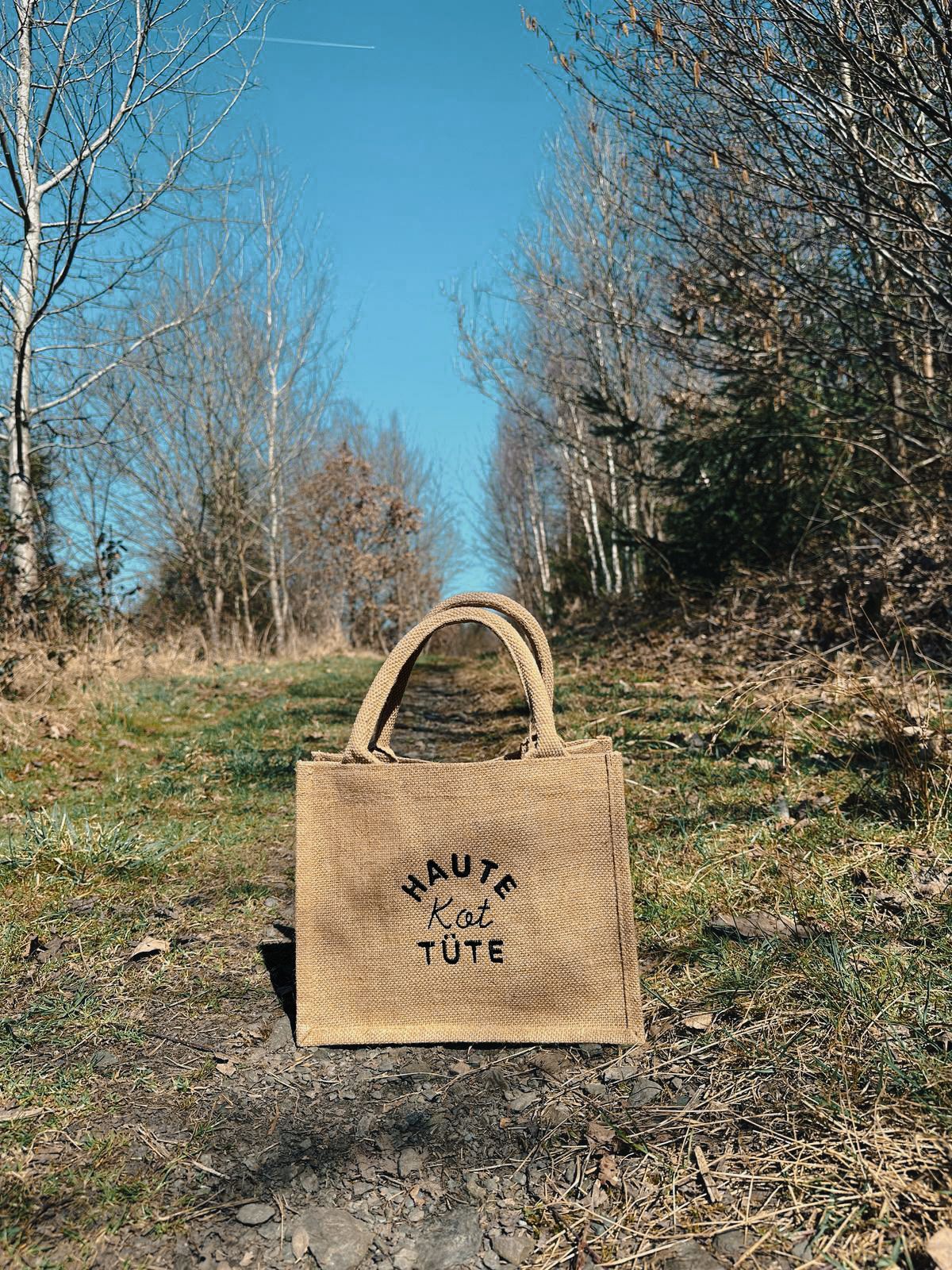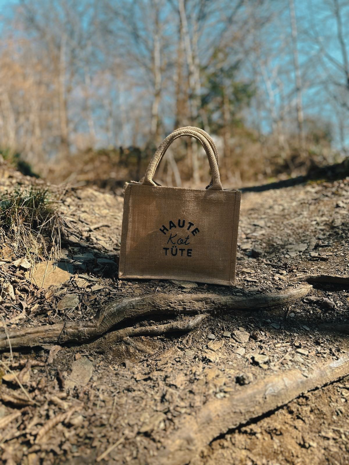 „Haute Kot Tüte“ – Die stylische naturfarbene Jute-Tasche mit Humor!