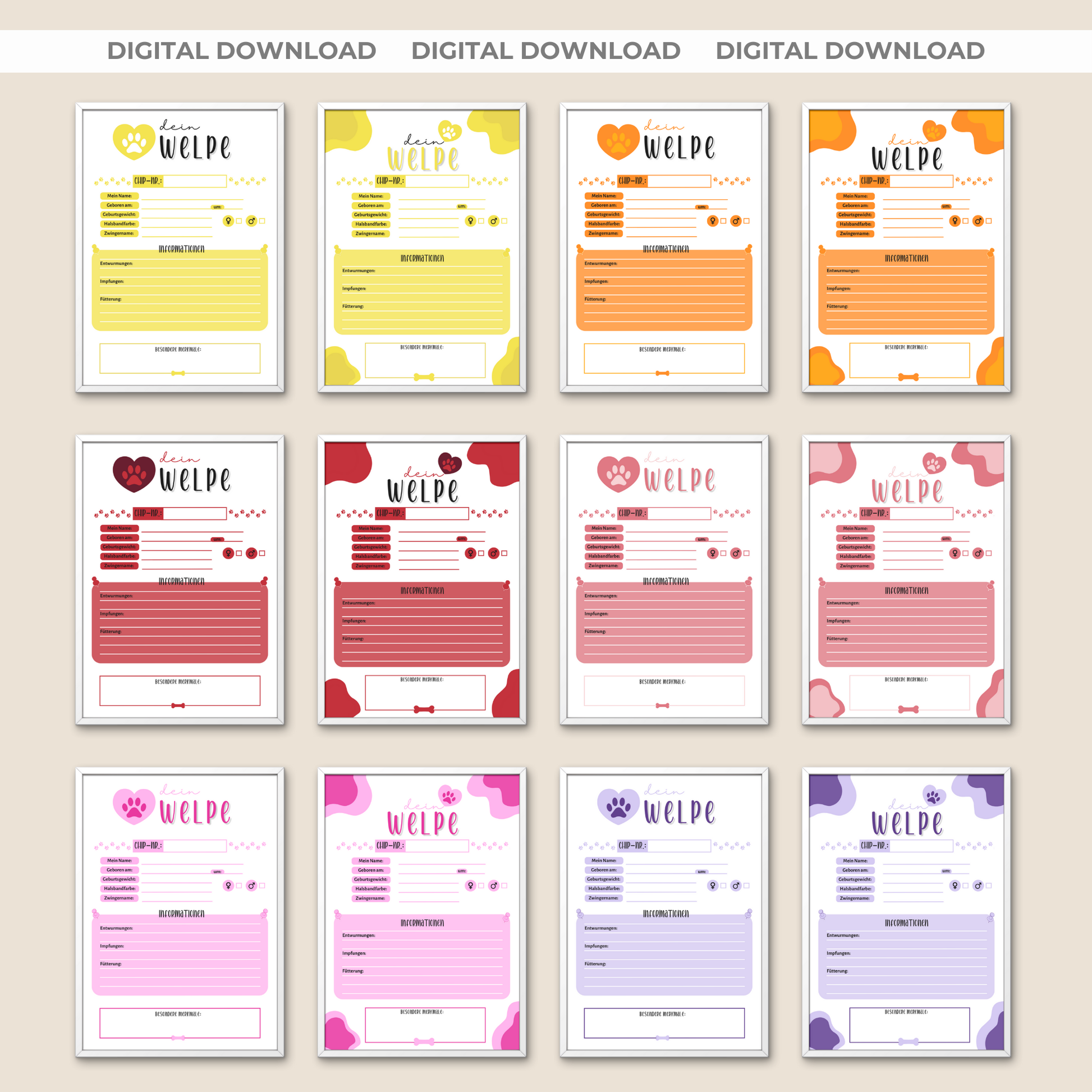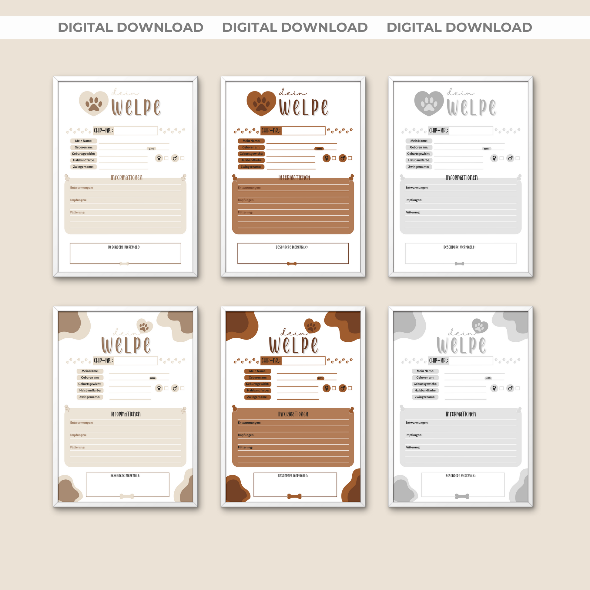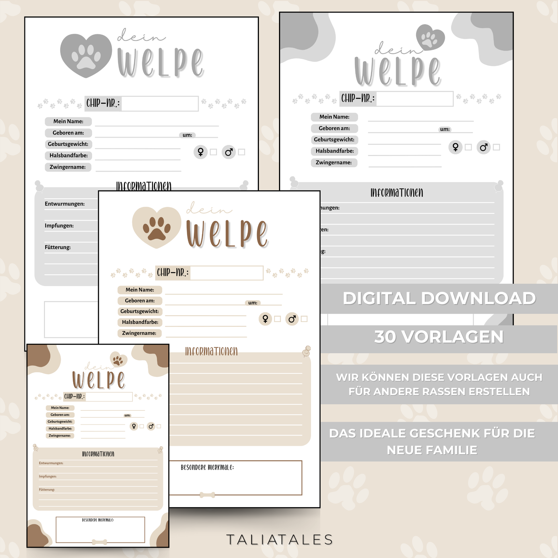 ✔ 30 Welpen-Datenblätter im PDF- und PNG-Format (Zip-Ordner)