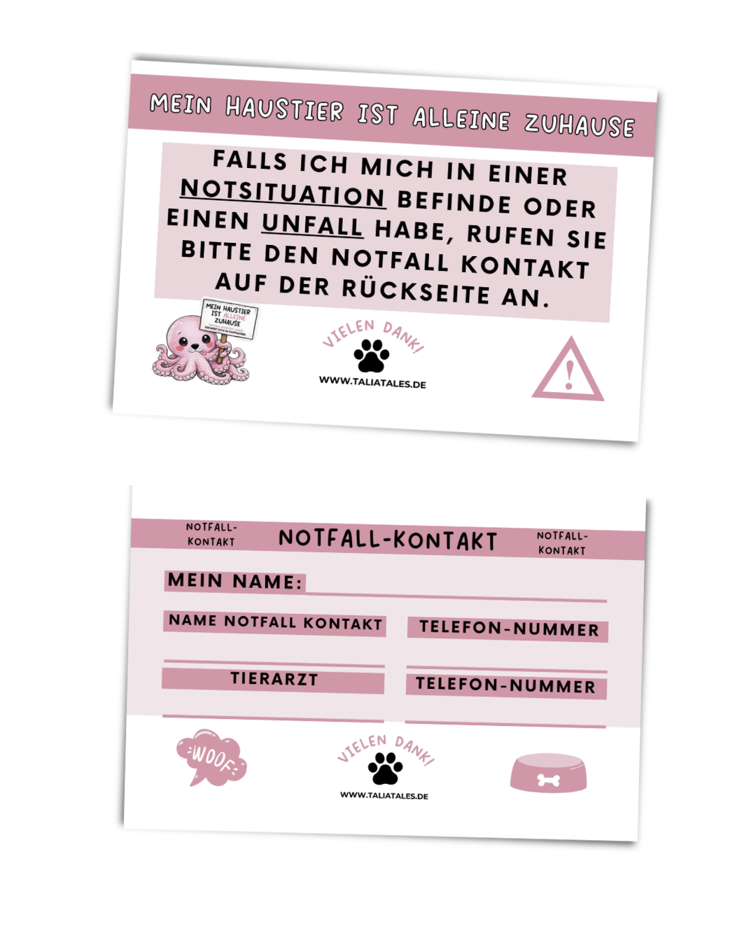 - RĂŒckseite mit Feldern fĂŒr Notfallkontakt & Tierarzt