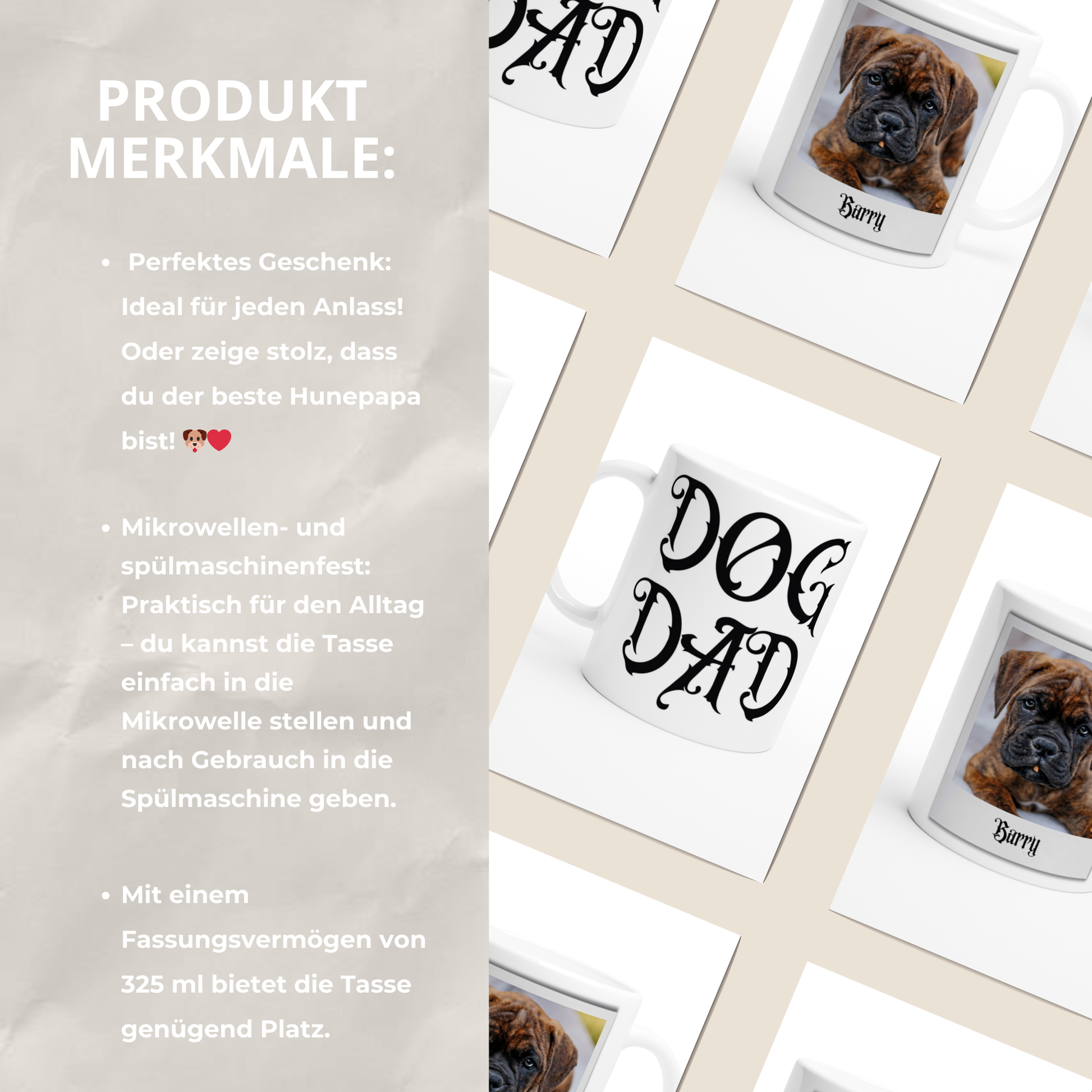 Unsere "DOG DAD" Tasse ist das perfekte personalisierte Geschenk für alle Hundepapas, die ihren Kaffee oder Tee mit einem Hauch von Hundeliebe genießen möchten.