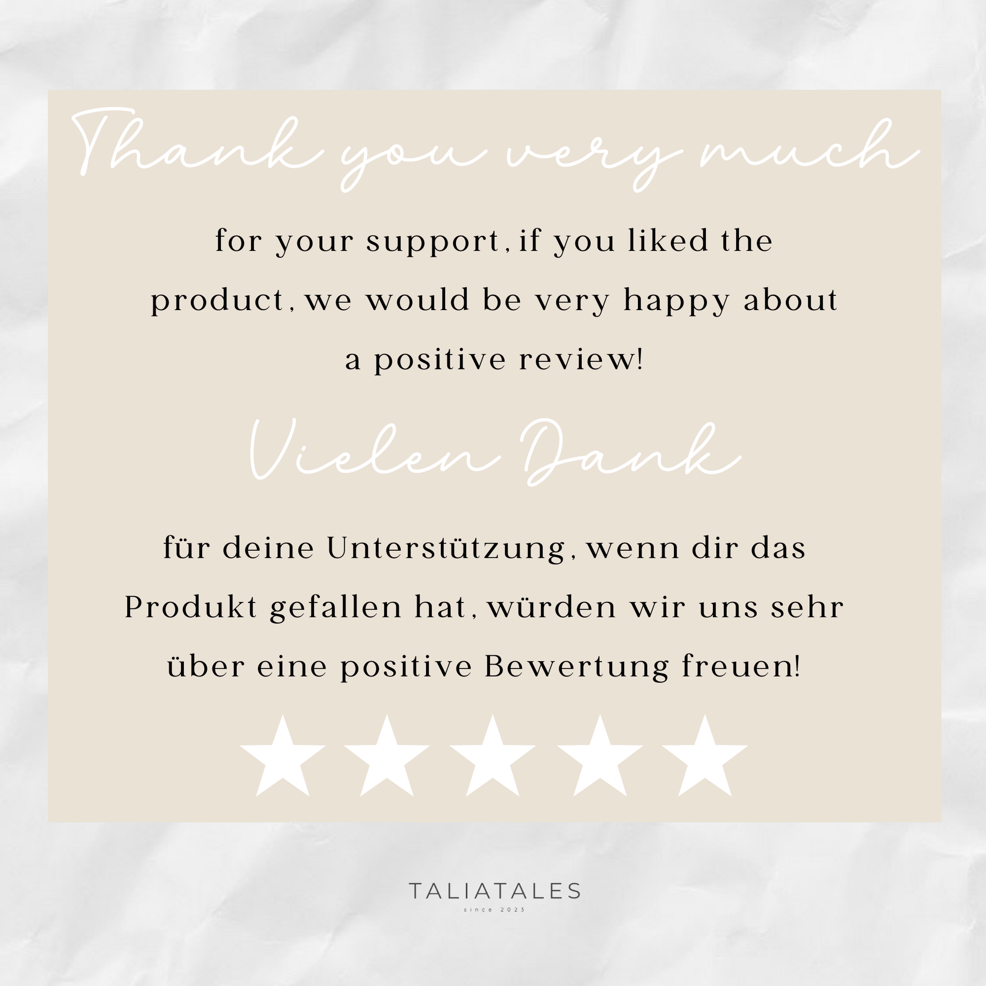Schreib uns gern per Mail an info@taliatales.de oder über Instagram @taliatales.de – wir sind für dich da.