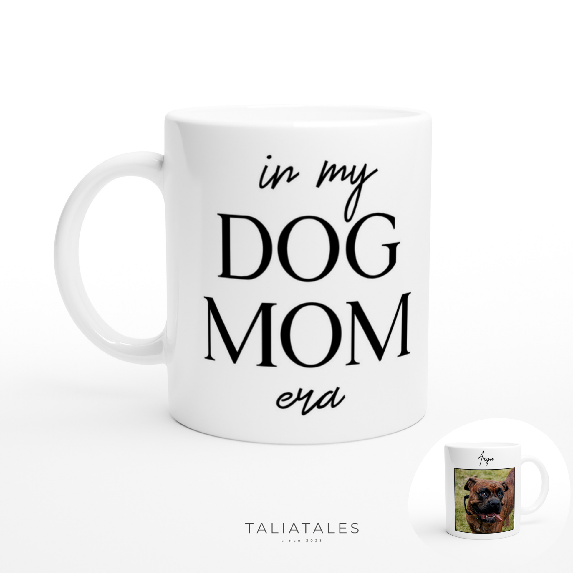 Unsere "IN MY DOG MOM ERA" Tasse ist das perfekte personalisierte Geschenk für alle Hundemamas, die ihren Kaffee oder Tee mit einem Hauch von Hundeliebe genießen möchten.