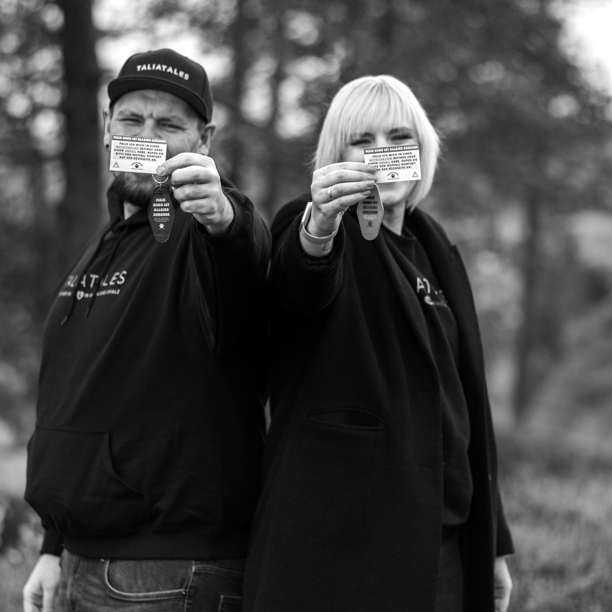 Der Anhänger weist im Ernstfall darauf hin, dass jemand zu Hause auf dich angewiesen ist – etwa dein Hund. Zusätzlich gibt es eine Karte für dein Portemonnaie, auf der wichtige Infos vermerkt sind. Ein kleines Detail, das im Notfall viel bewirken kann.