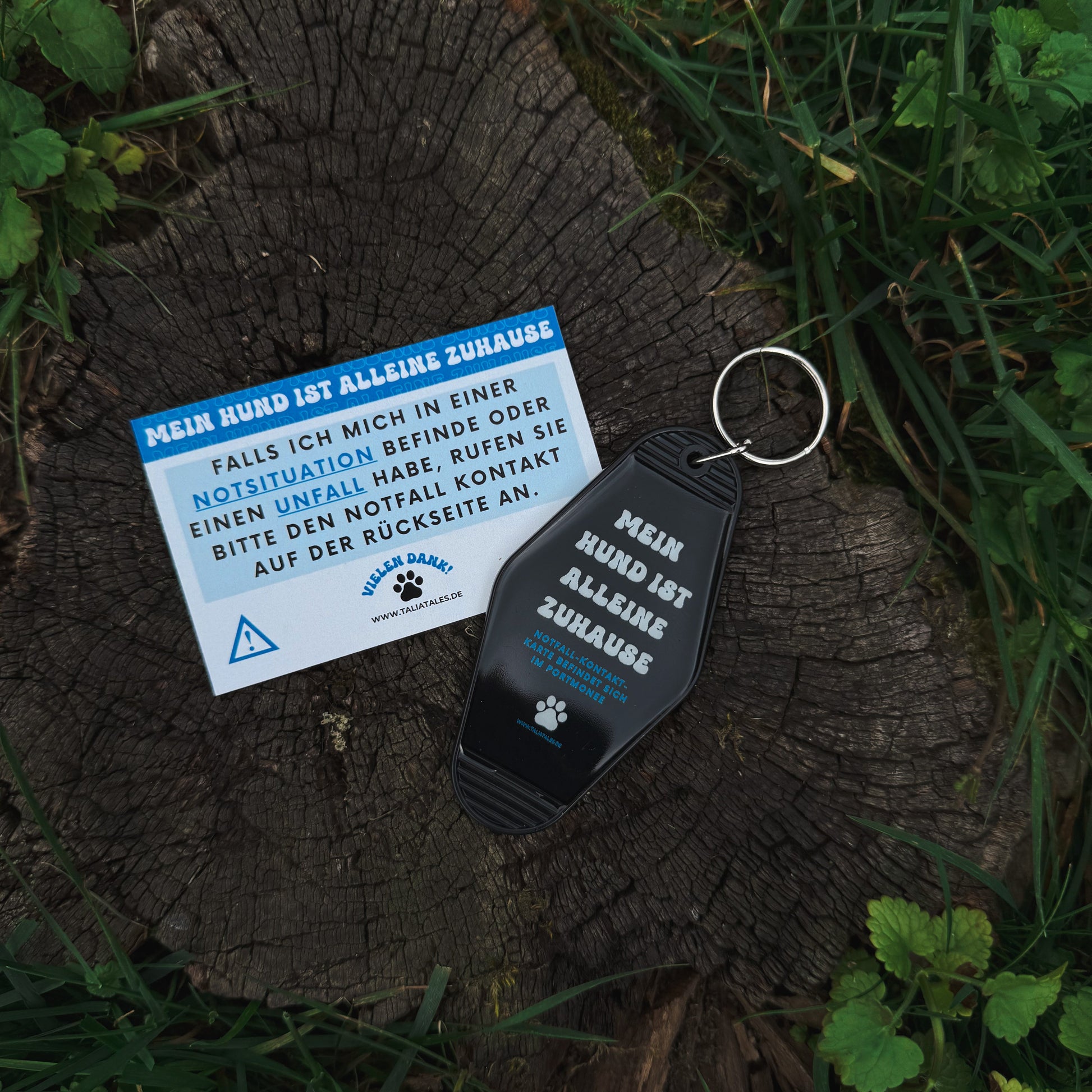 Schlüsselanhänger „Mein Hund ist alleine zuhause“ Black – inkl. Notfallkarte