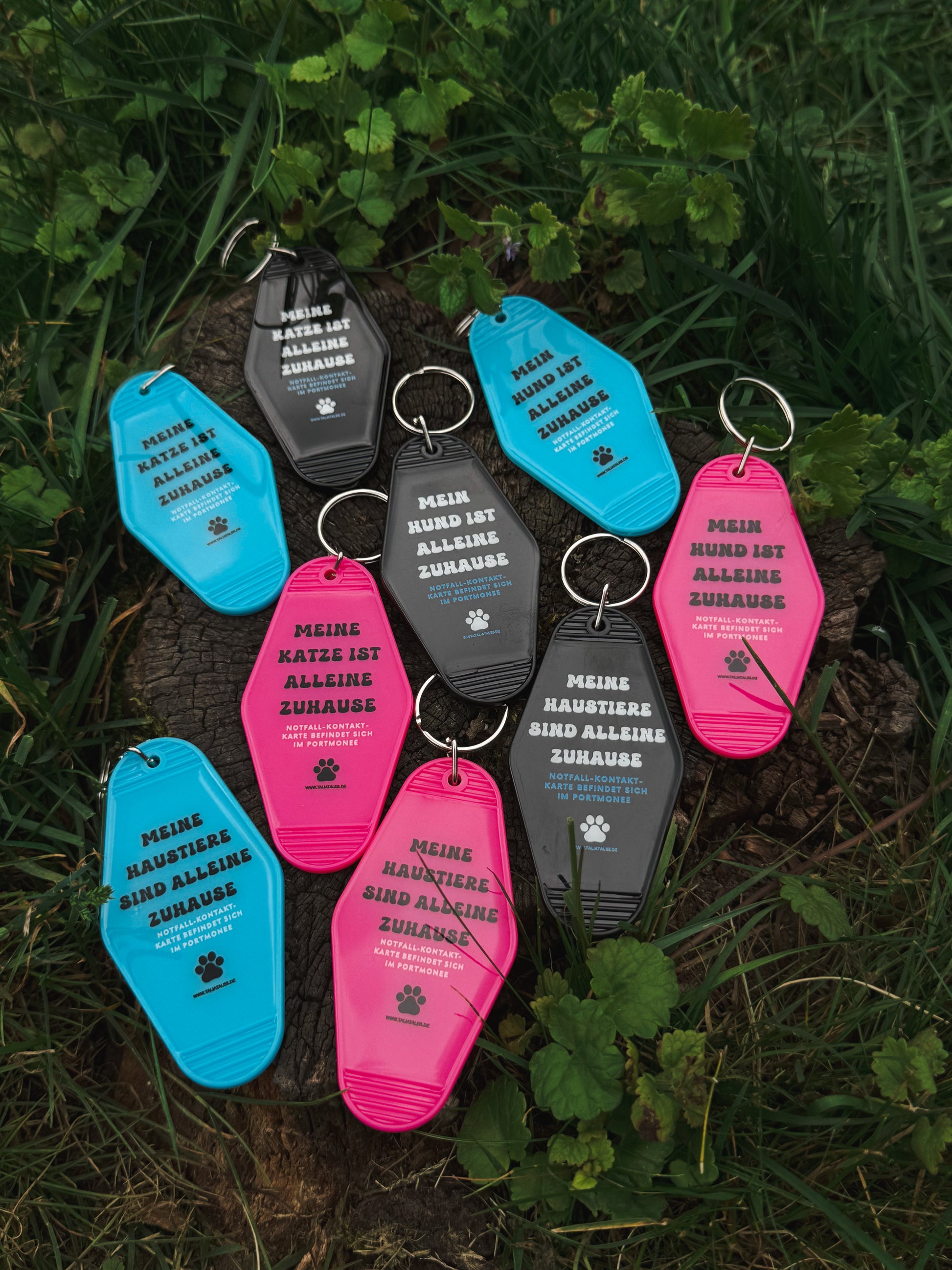 - 1 Stk. schwarzer Schlüsselanhänger mit Hinweis „Mein Hund ist alleine zuhause“
