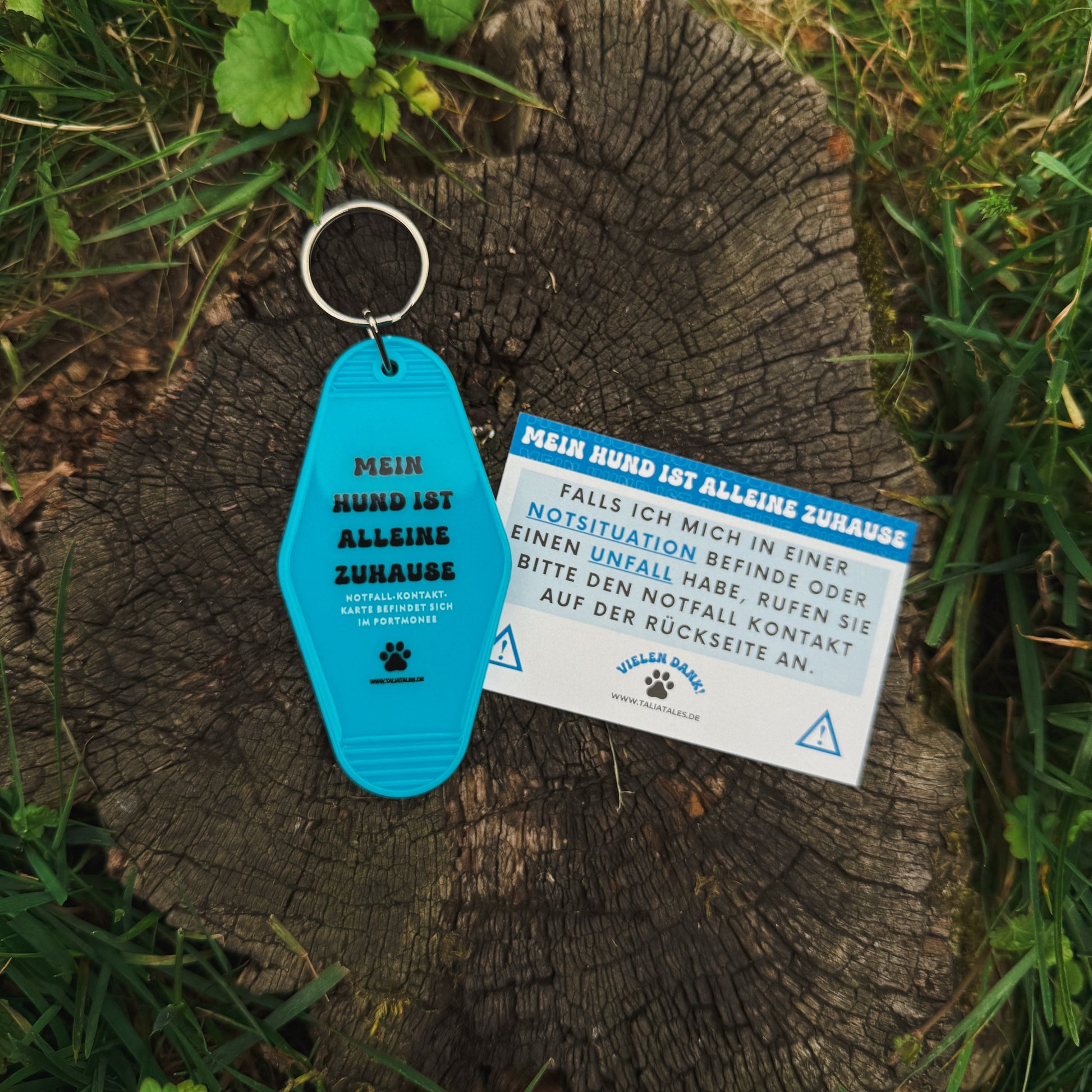 Schlüsselanhänger „Mein Hund ist alleine zuhause“ Blue – inkl. Notfallkarte