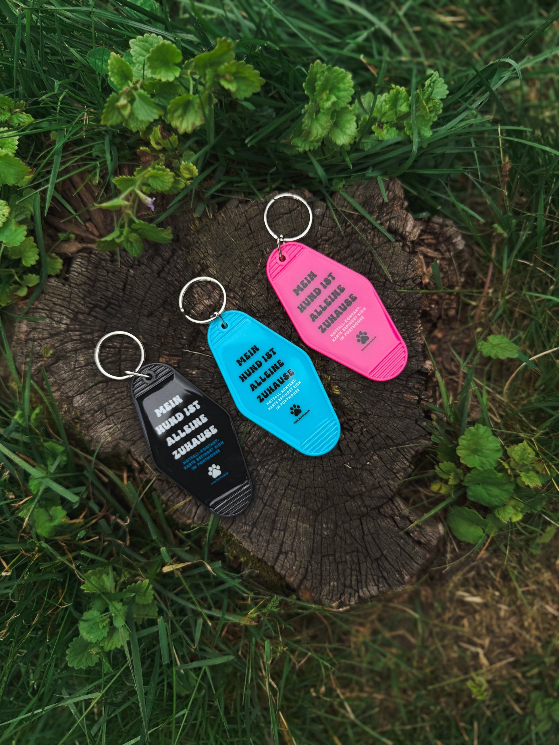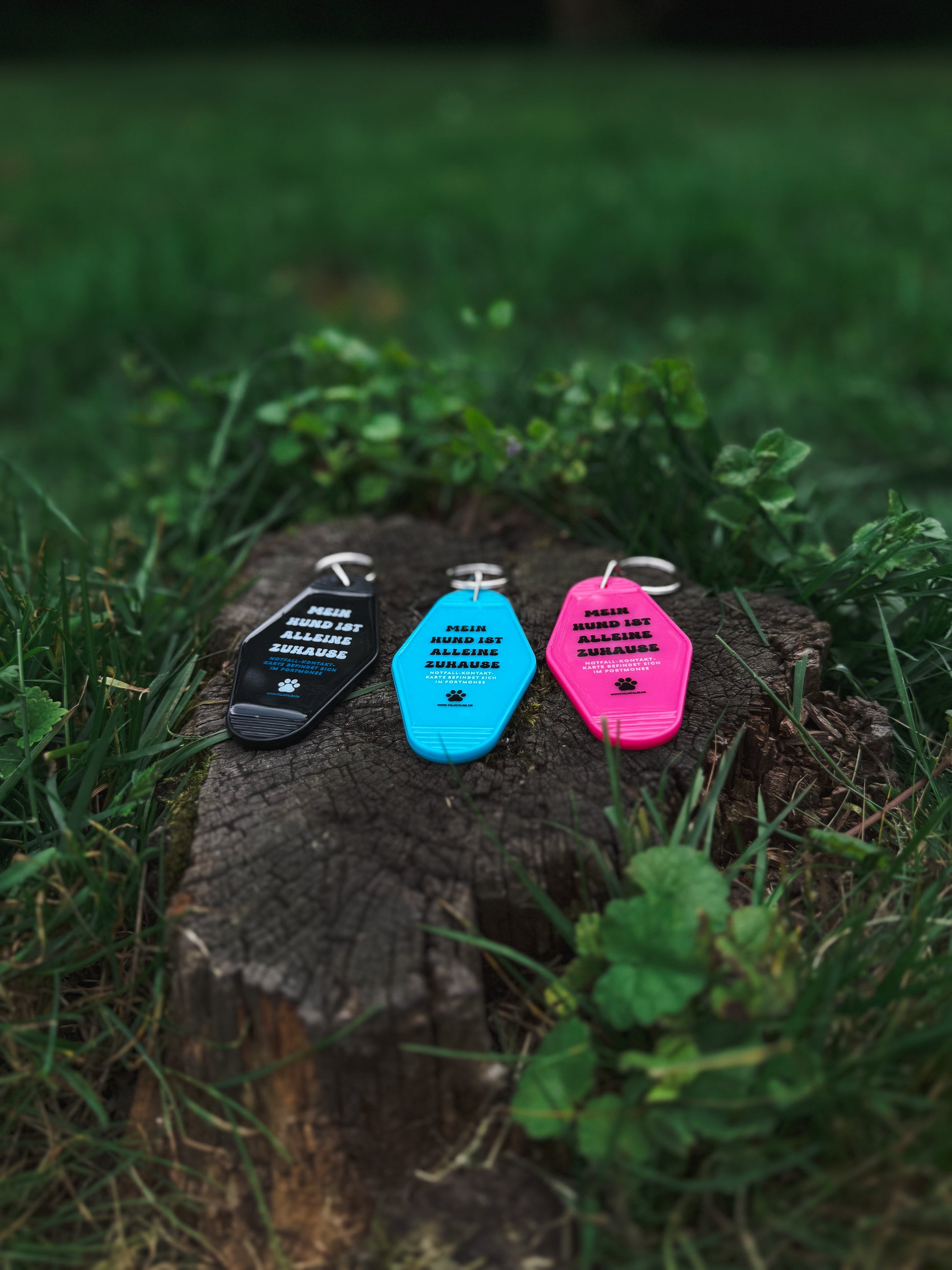 - 1 Stk. blauer Schlüsselanhänger mit Hinweis „Mein Hund ist alleine zuhause“
