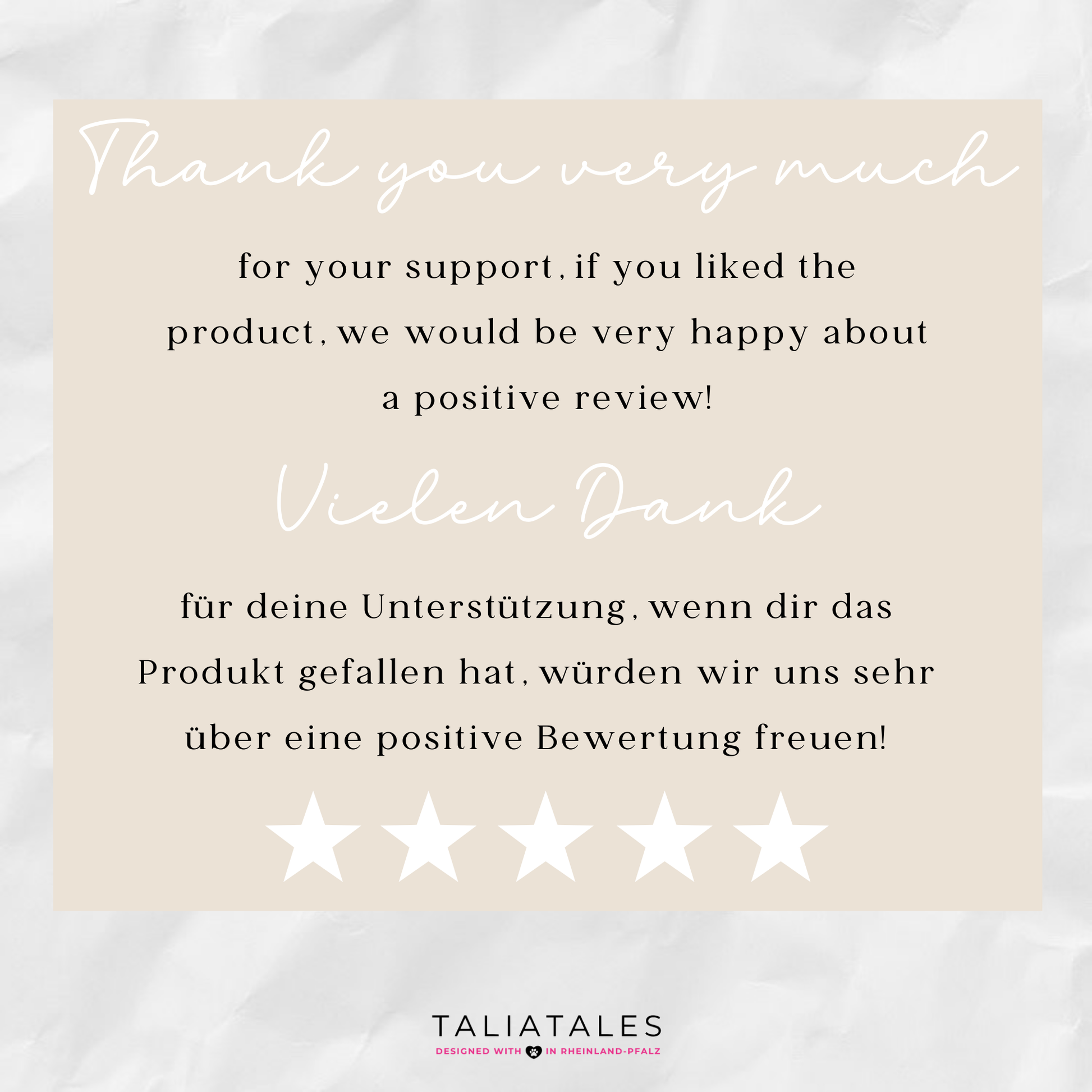 Schreib uns gern per Mail an info@taliatales.de oder über Instagram @taliatales.de – wir sind für dich da.