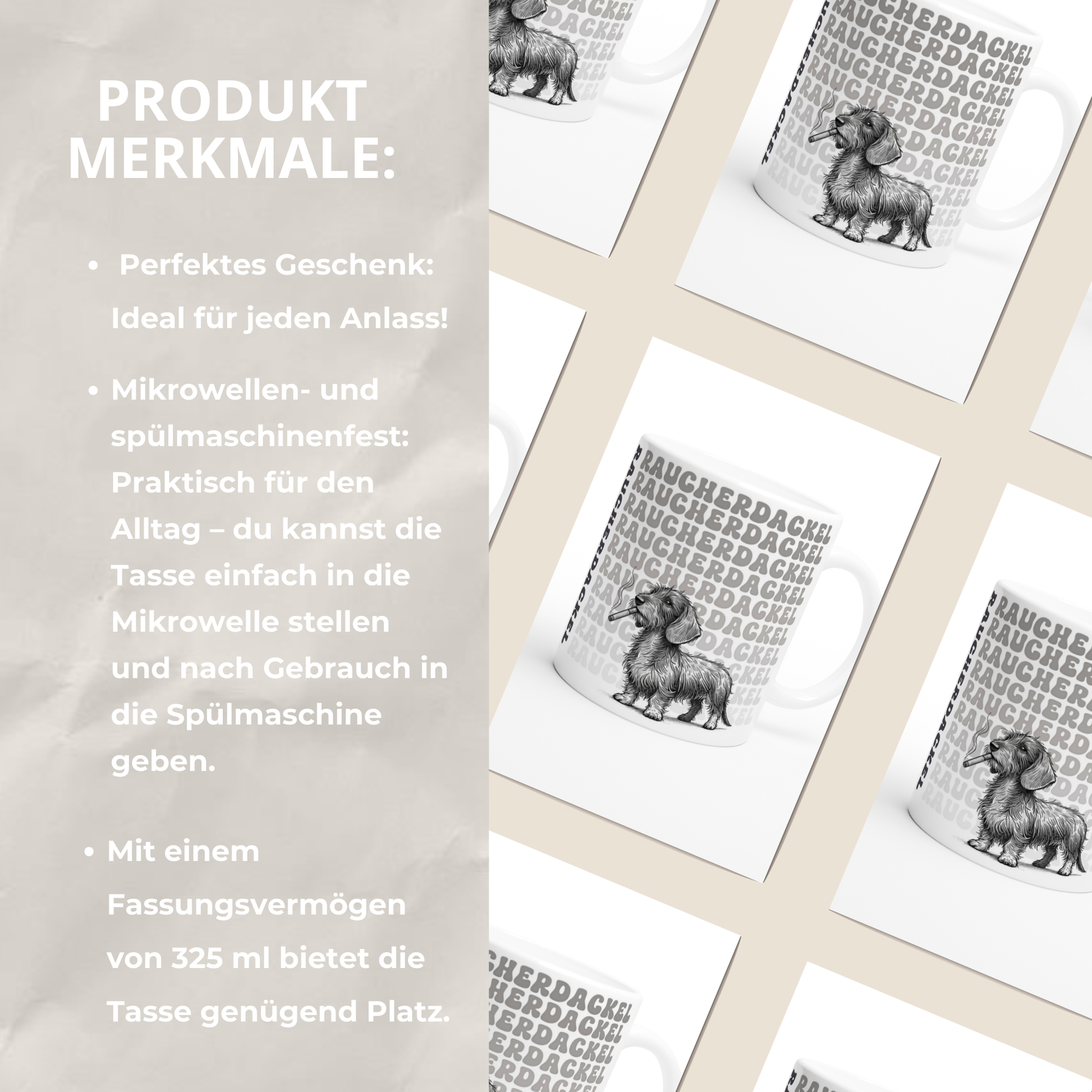 Tasse "Raucher-Dackel" Rauhaardackel Hundetasse