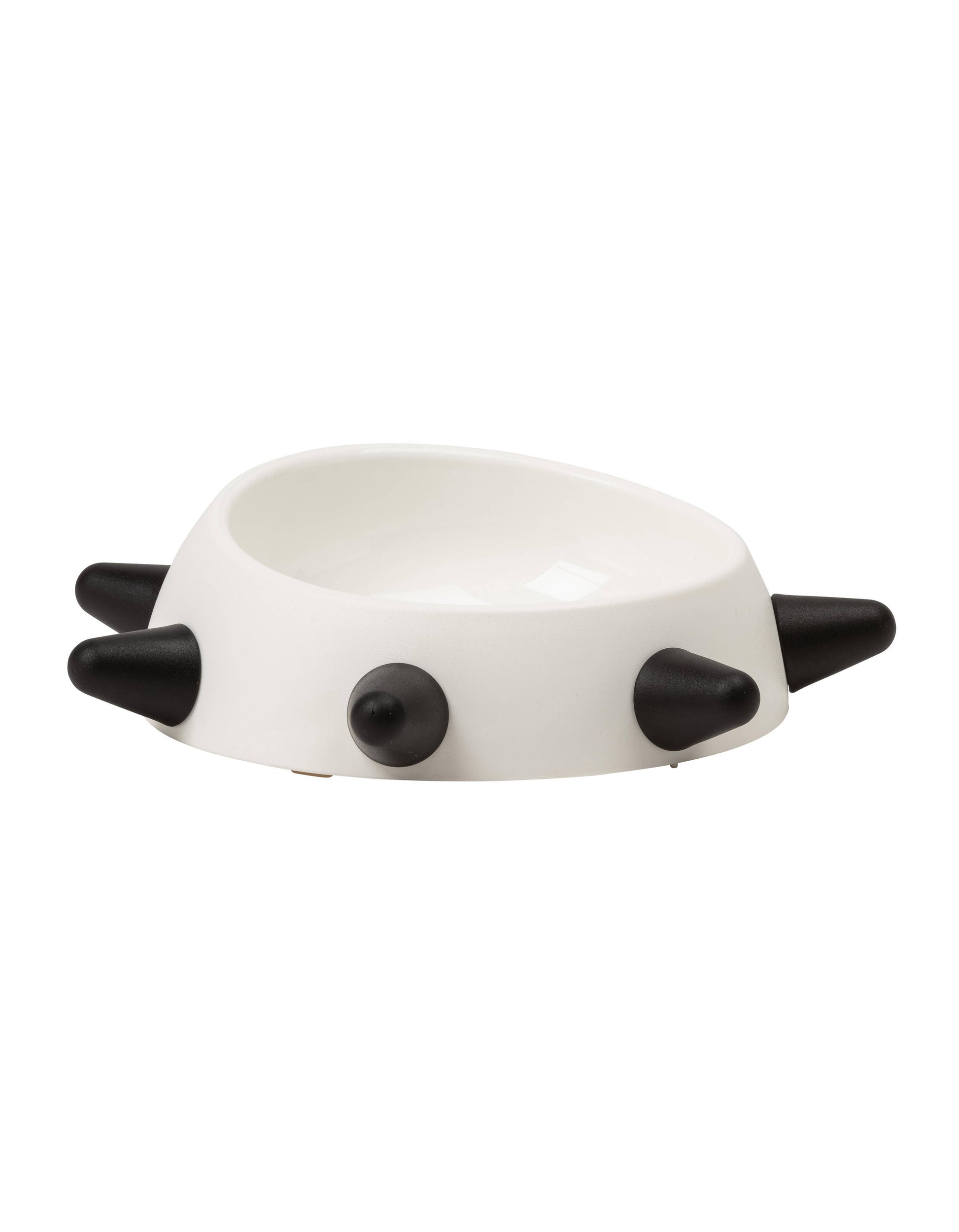 Dieser Napf verbindet cleveres Design mit einem cleanen Look in Weiß mit schwarzen Nieten. Die schräge Form erleichtert das Fressen – vor allem für kurznasige Rassen wie Mops, Bully & Co. Aber auch andere Hunde profitieren: ergonomisch, rutschfest und im Alltag einfach durchdacht.
