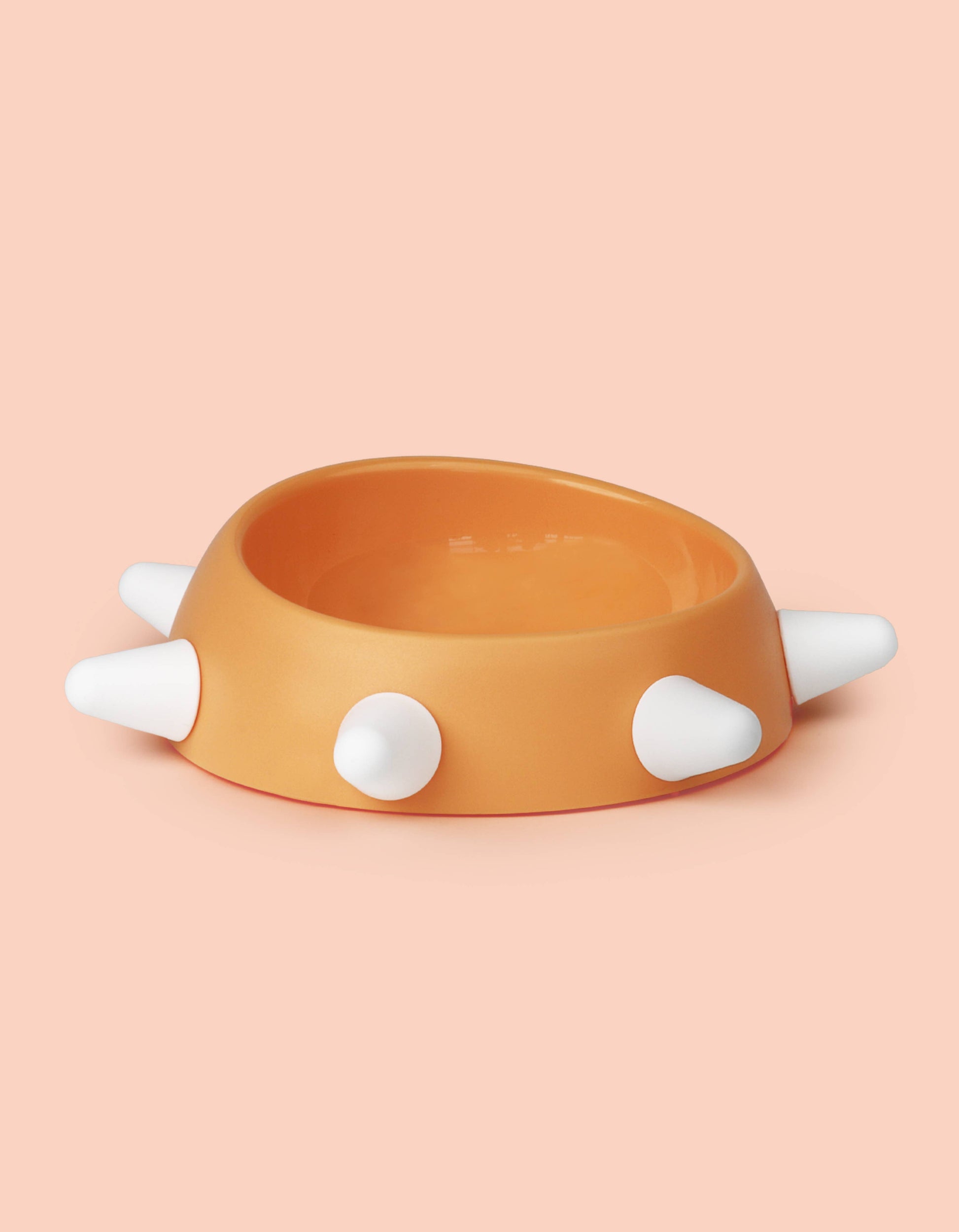 Dieser Napf kombiniert cleveres Design mit einem auffälligen Look in Orange mit weißen Nieten. Die schräge Form erleichtert das Fressen – besonders für kurznasige Rassen wie Mops, Bully & Co. Aber auch andere Hunde profitieren: ergonomisch, rutschfest und alltagstauglich.