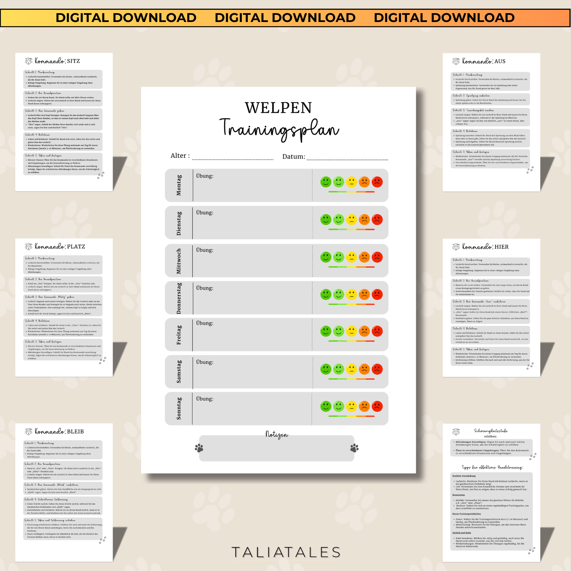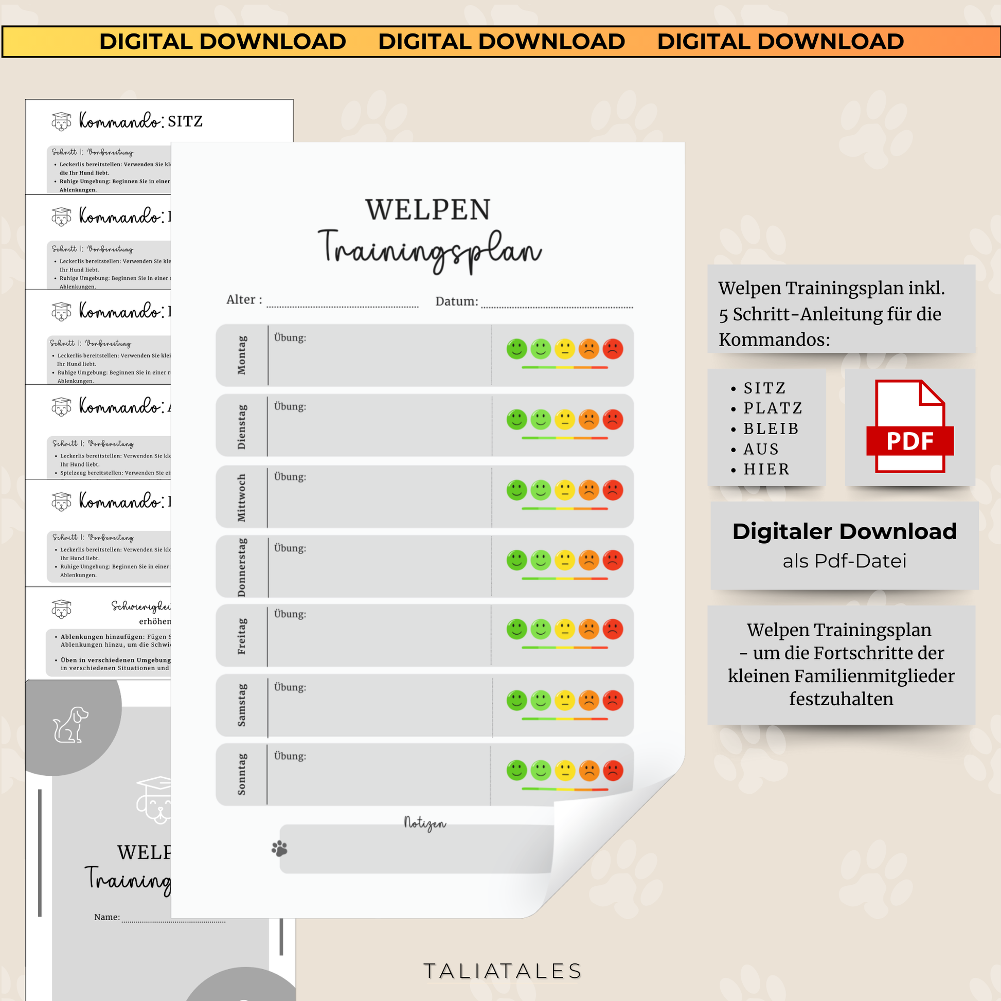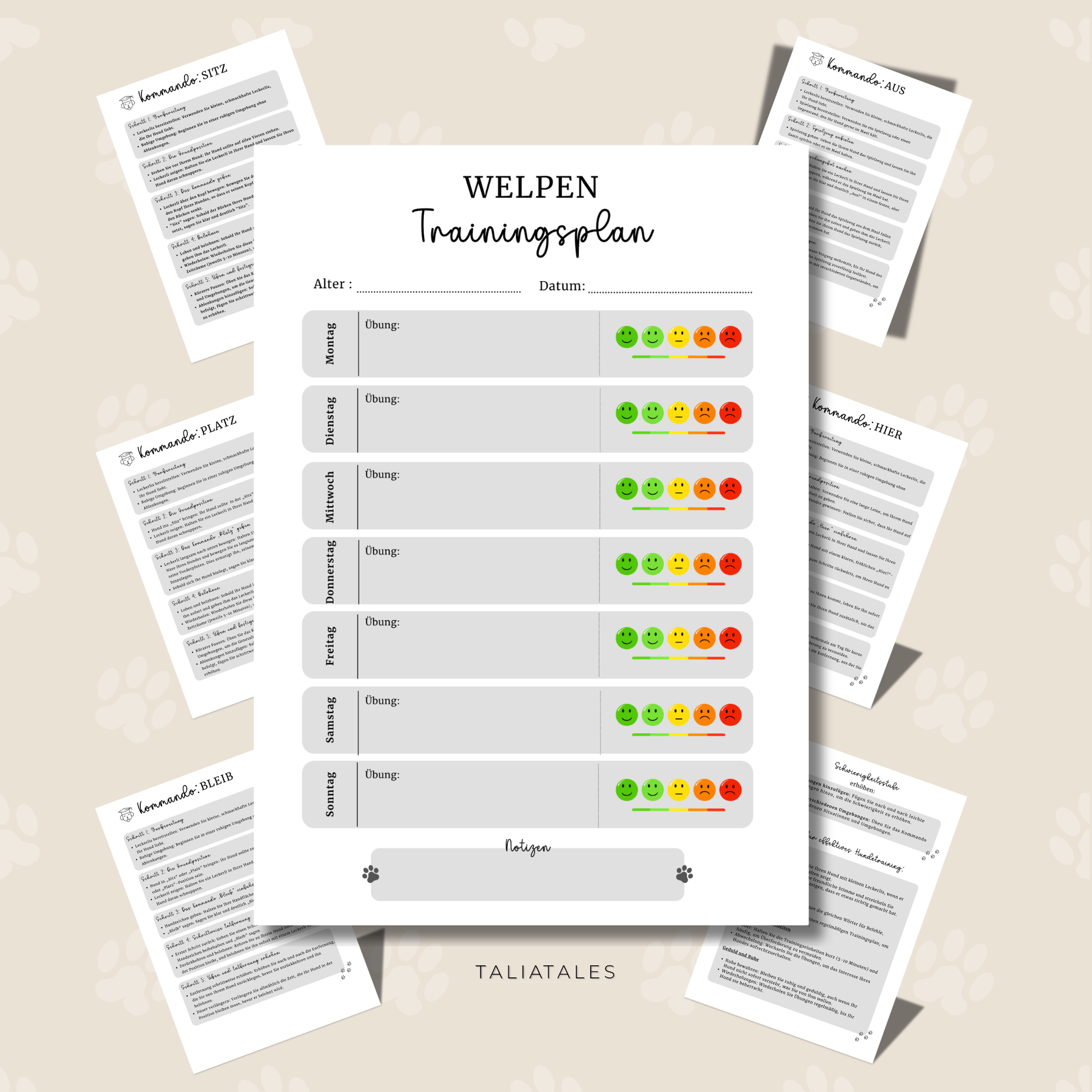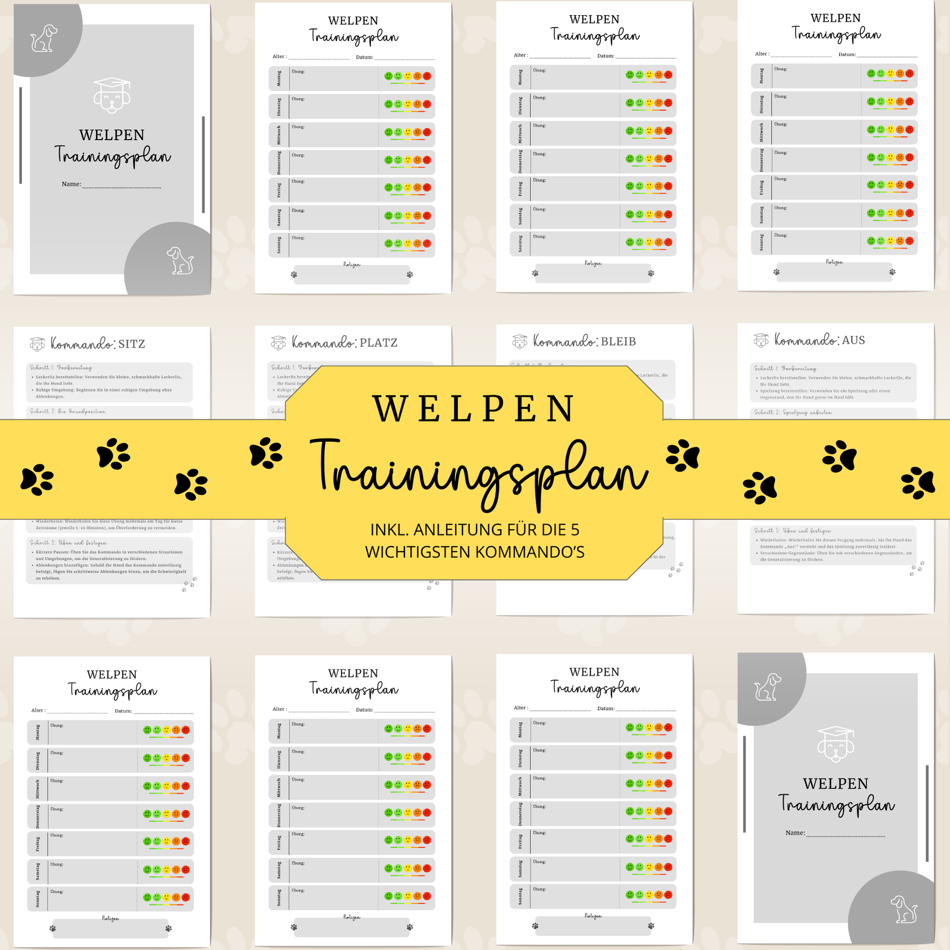 Welpen Trainingsplan inkl. 5 Schritt-Kommando-Anleitung GRAU | PDF Datei | Wochenplaner Training Hund | 7 Seiten | Hundetrainingsplaner (Kopie)